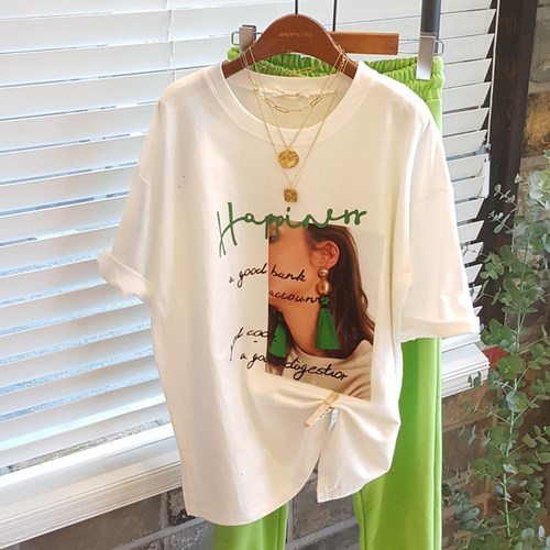 스타일아유 NY 오버핏 반팔티 여성용 롱 빅사이즈 박시 반팔티셔츠 반팔 티셔츠