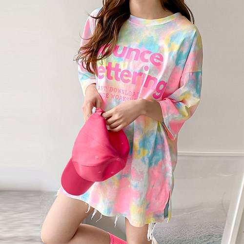 티탁 여성 빅사이즈 루즈핏 롱티셔츠 형광나염롱티