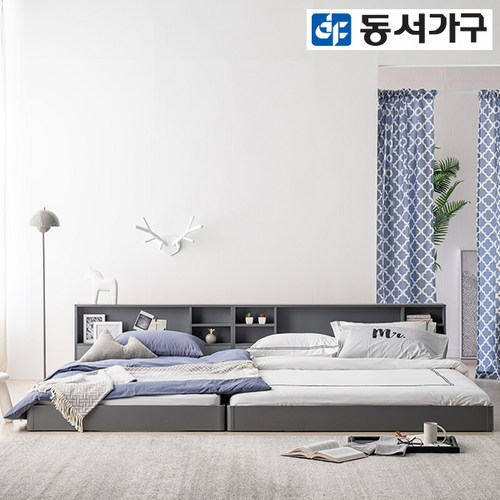 동서가구 플로어 수납헤드 저상형 슈퍼싱글침대 프레임 DF640232, 그레이