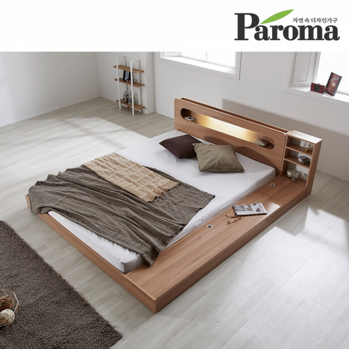파로마 에반 LED 저상형 침대/수납형 퀸(Q)_프레임만(착불), 화이트