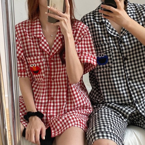 지미라벨 당일배송 여름커플체크잠옷 커플파자마세트