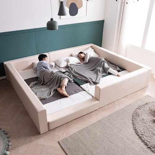 웰퍼니쳐 리엔 가죽 저상형 패밀리 침대SS+Q(매트리스 포함), 크림