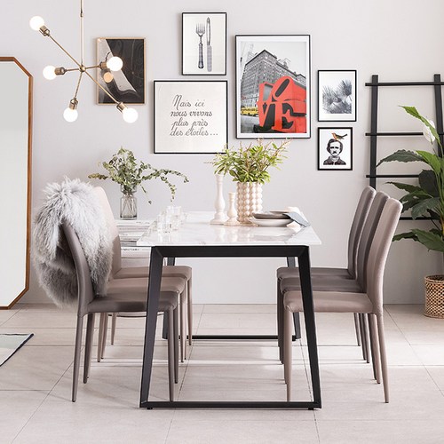 칸토 비앙코카라라 대리석 4인용 6인용 식탁 세트, 1400식탁+의자4개(색상 배송메세지 기재)