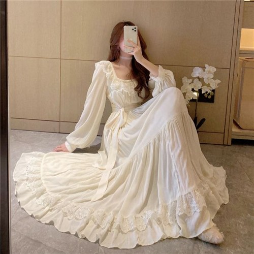안나리야 스퀘어넥 레이스 플리츠 롱원피스 SY