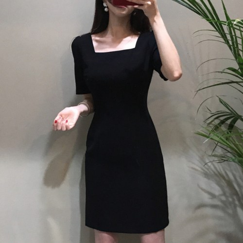단아한 스퀘어넥 오피스 정장 H라인 여름 하객원피스