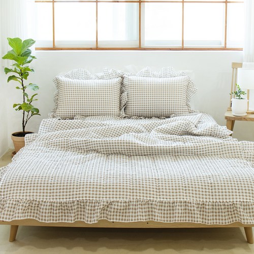 이불넷 시원한 시어서커 여름 프릴 차렵이불 + 베개커버세트, 코지베이지