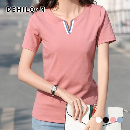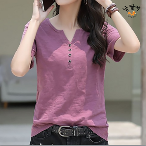 데일로엔 여성용 멜로우 트임 브이넥 반팔 티셔츠