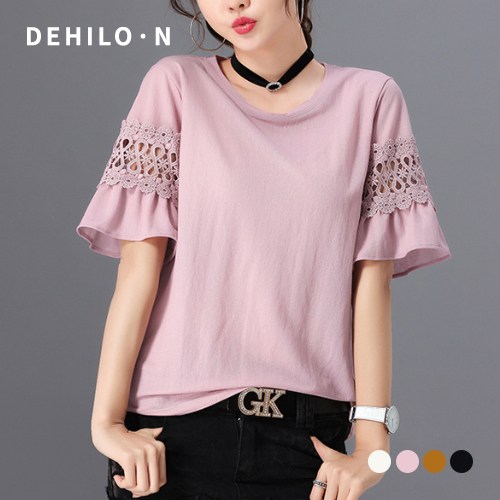 데일로엔 여성용 쿨 린넨 레이스 반팔 티셔츠