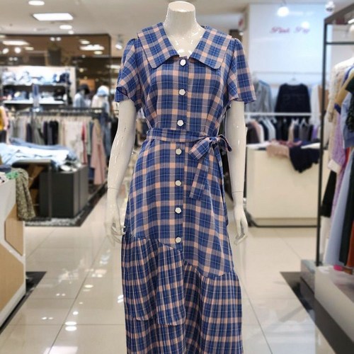 티렌 세일러 카라 체크 플리츠 원피스 L202PWO411 (L203PWO411) 롱원피스 체크원피스 플리츠원피스 리본원피스 여름원피스 데일리원피스