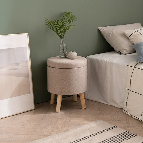 [삼익가구]파트라 원형 원목 수납 스툴 화장대 의자, 오트밀