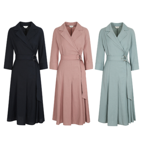 JJ JIGOTT GK4M0OPP3 브이넥 칼라 백 밴딩 린넨 원피스