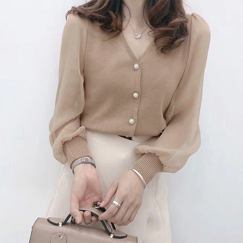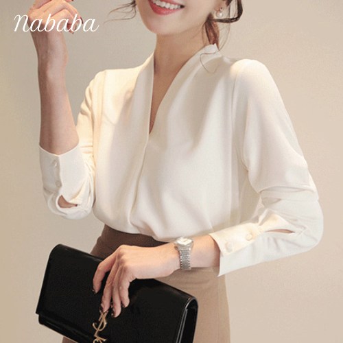 나바바 NB274 여성 브이넥 봄 가을 긴소매 쉬폰 블라우스