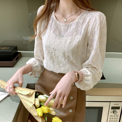 시크해라 00UZGCMC 여성 여름 쉬폰 블라우스 7부 소매 레이스 블라우스