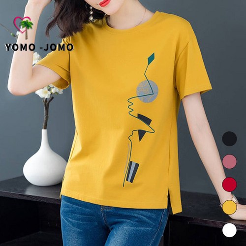 YOMO-JOMO 코튼 면 빅사이즈 심플 그리드 컬러드 반팔 티셔츠 YJS116