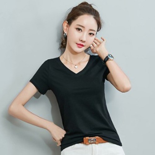 데일로엔 여성용 무지 브이넥 반팔 티셔츠 1413