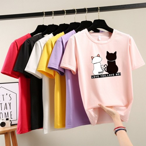 스타일아유 여성용 앙증고양이 프린팅 반팔 티셔츠