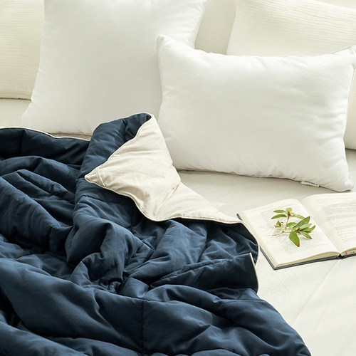 무로 코코넨네 피치스킨 양면 차렵이불, 네이비 + 그레이