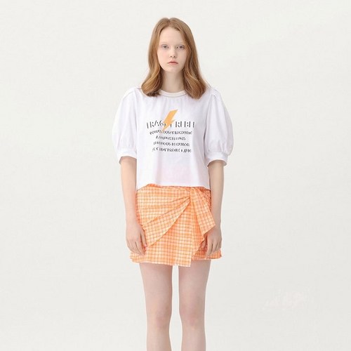 쥬시쥬디 쥬시부천 트렌디한 디자인의 퍼프 5부 소매 페미닌 티셔츠 반팔
