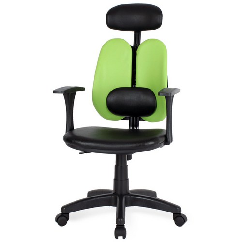 청심의자 휴먼C형 요추헤더형 우레탄바퀴 인조가죽 의자, 그린