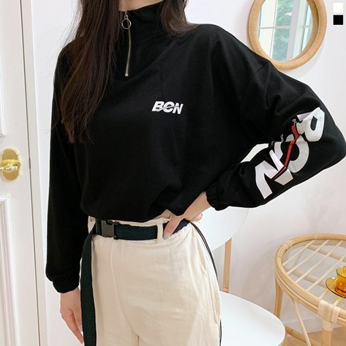 티데일리 본 크롭 반집업 맨투맨 여자 스트링 루즈핏 긴팔 티셔츠
