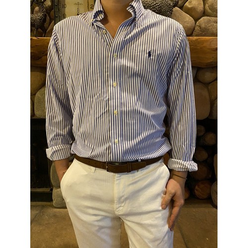 폴로 랄프로렌 위킹 앤 스트레치 퍼포먼스 블루 스트라이프 긴팔셔츠
