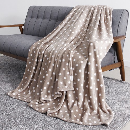 극세사똑딱이 밍크 양털 체크 무릎 담요, 베이지
