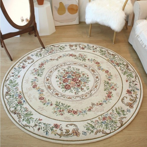 엔틱 자카드 페르시안 패턴 빈티지 러그 원형, 플로랄 아이보리