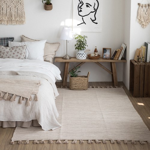 엘레나하임 멜란지 태슬 코튼 러그, 베이지