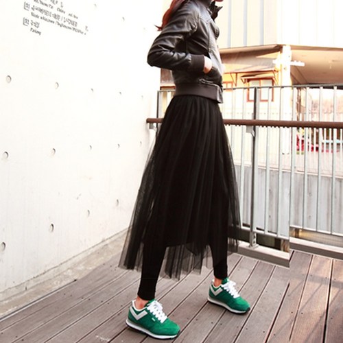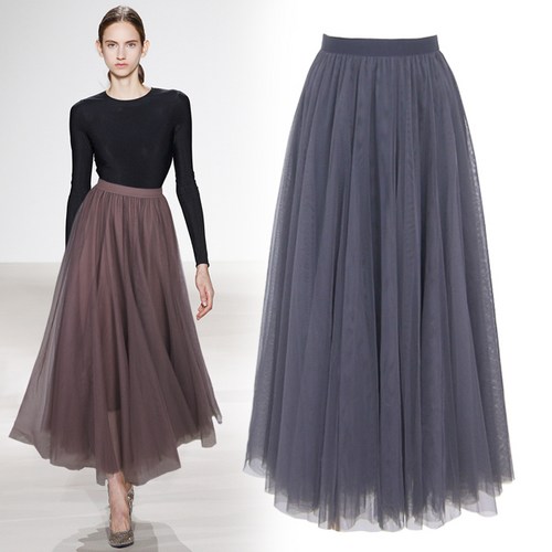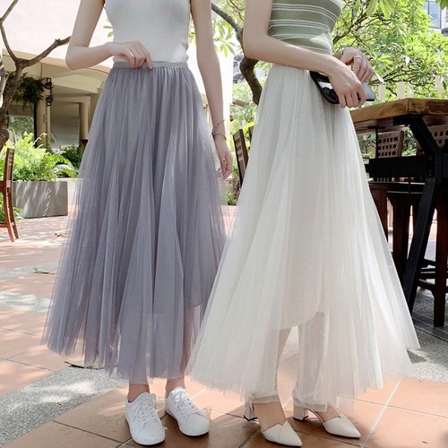 롱 플레어 망사 샤스커트