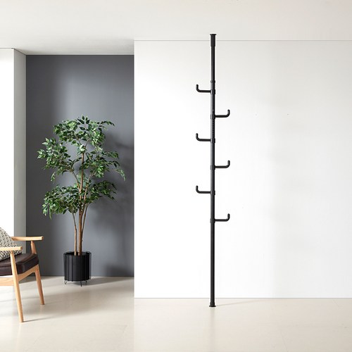 트레벨 수납 1단 사다리 고정행거 9009, 블랙