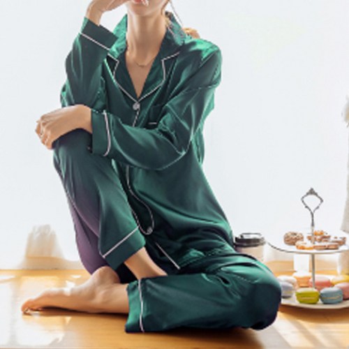여성용 시크모던 페미닌 긴팔 실크파자마세트