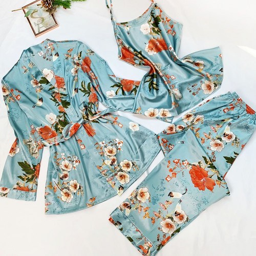 실키 레이스 슬립 나이트가운 파자마 세트 잠옷 실크홈웨어