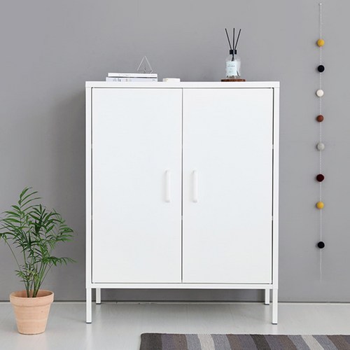 마켓비 MKB 캐비넷 모던세로중 2문 수납장 8001015, 화이트