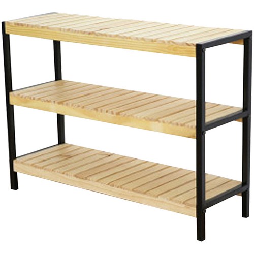 본스토리 철재원목선반 3단 800 mm, 블랙 + 네추럴우드
