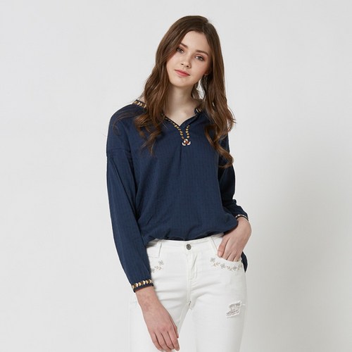 포커스_본점 DB 써스데이아일랜드 세일러 자수 카라 블라우스 T206MBL134W