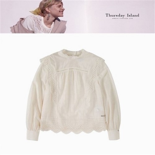 포커스_본점 DB 써스데이아일랜드 물결 레이스 블라우스 T206MBL143W