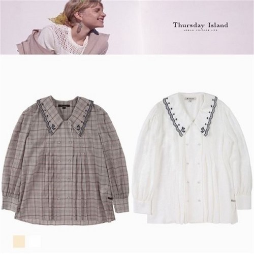 포커스_본점 DB 써스데이아일랜드 핀턱 포인트 블라우스 T206MBL136W