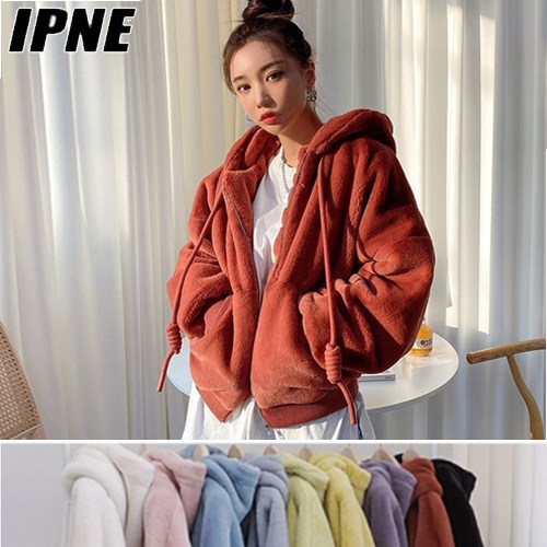 [이쁘네] 9color 밍크퍼후드집업자켓 인싸템 주문폭주!! 페이크퍼 도톰 여성 여자 오버핏 루즈핏 박시 무지 심플 기본 밍크 퍼 후드 집업 자켓 가을 겨울 귀여운 교복 후리스 뽀글 잠바 양털 뽀글이 아우터 실크 토끼털 앙고라 이쁜 예쁜 데일리 러블리 학생
