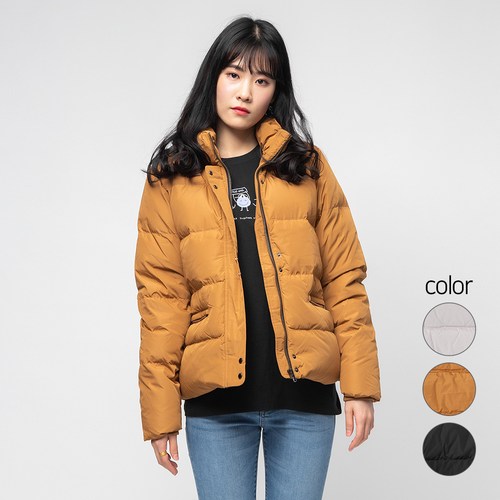 여성 아우터 사선 지퍼 버튼 후드 슬림 패딩 점퍼