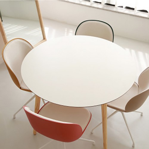 체나레 HPM 멜라민 원형 화이트 카페 식탁 800 테이블, 내추럴