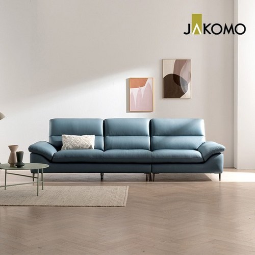 자코모 모노쉬 4인 카우치형 기능성 슈렁큰 천연면피 소가죽 소파, 미스티블루/우형