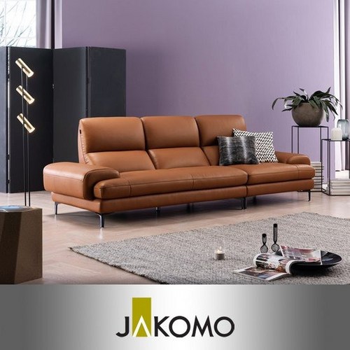자코모 베니 4인 카우치형 기능성 천연면피 소가죽 소파, 오렌지/우형