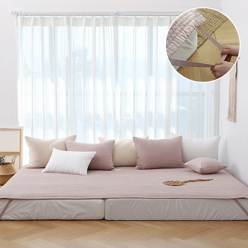 ecodeco 로디나 순면 워싱 피그먼트 패밀리 침대패드, 크림아이보리