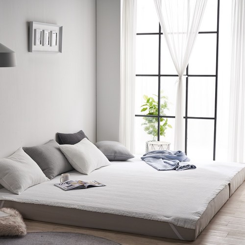 ecodeco 로디나 순면 워싱 피그먼트 패밀리 침대패드, 그레이