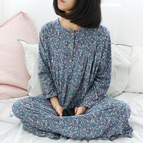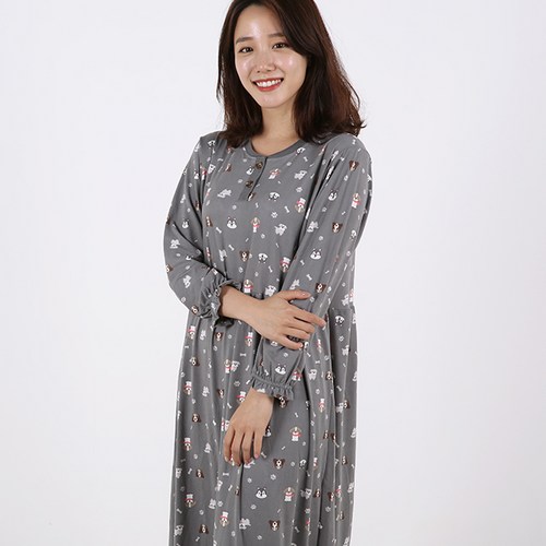 코지데이 여성용 수면 롱 홈웨어 파자마 기모단추 원피스