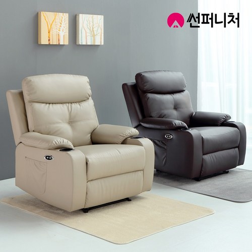 썬퍼니처 가구 1인용 전동 리클라이너 소파 7104 가죽 USB 독립스프링 컵홀더, 7104 버튼식_라이트베이지