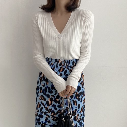 먼데이홀릭 슬림핏 브이넥 3버튼 니트 골지 가디건