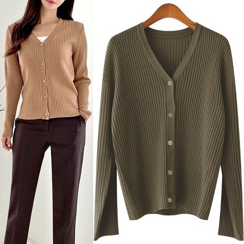 이힝 여성용 5버튼 골지 브이넥 니트 가디건