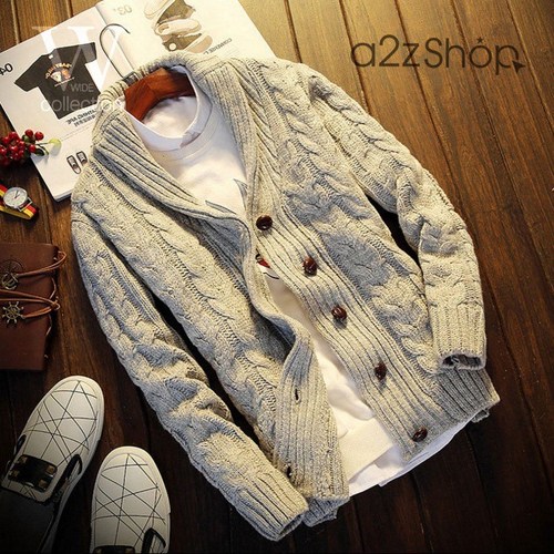 a2z 남자 빅사이즈 클레식 터틀넥 꽈배기 가디건 니트가디건