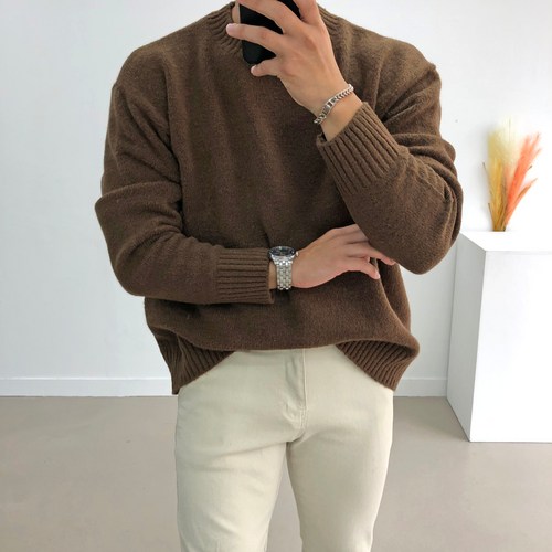 간빠레 부드러운 두툼 오버핏 라운드 남자니트